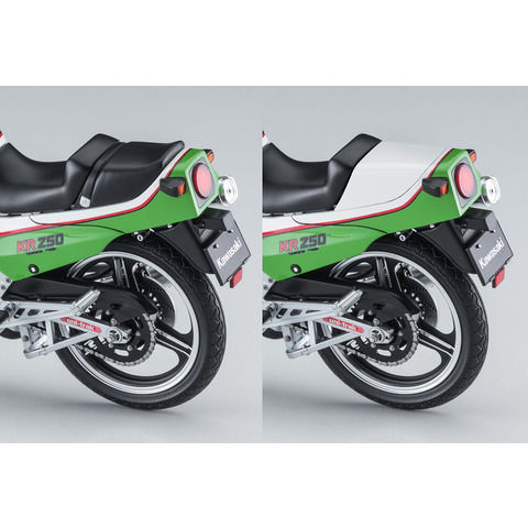 カウルを外した状態も再現可能。パーツ選択によりシングルシート仕様が再現可能です。