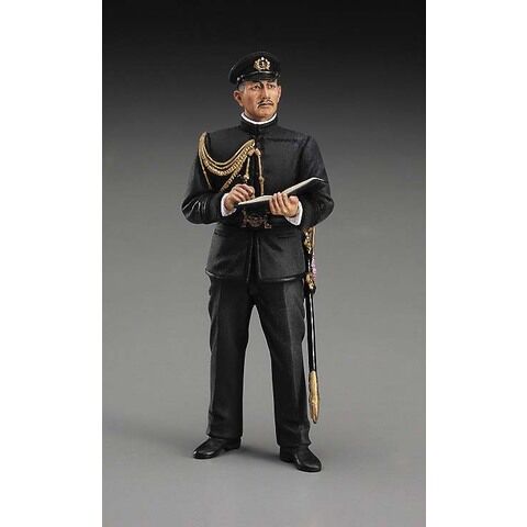 1/700 戦艦 三笠 “日本海海戦”(ウォーターラインモデル)に秋山真之の54mmメタルフィギュア(原型担当:竹 一郎 氏)をセットします。