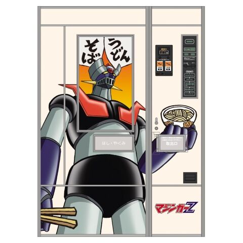 「マジンガーZ」のイラストやロゴマークを配したオリジナルデザインの「うどん・そば」自動販売機をキット化。