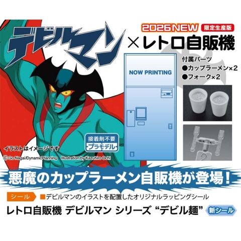 デビルマンのイラストを前面に配した、オリジナルデザインのカップラーメン自動販売機をキット化!