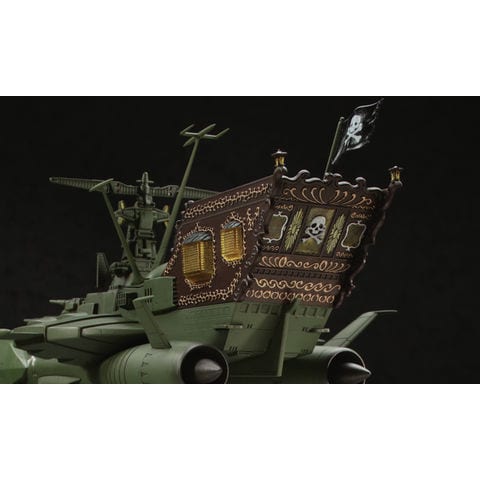 初登場作品「劇場版 銀河鉄道999」での活躍が印象深い艦首にドクロを配したバージョンの重厚な姿を再現。