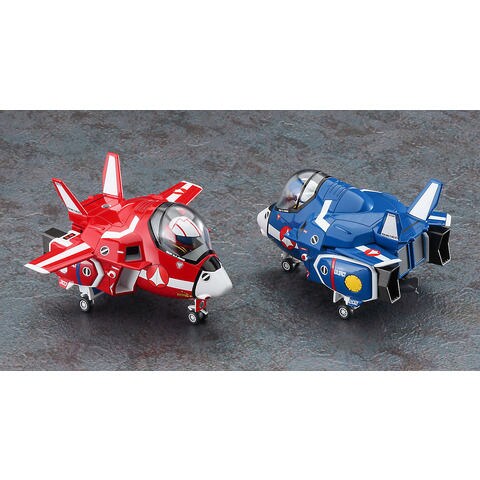 機体のパーツカラーはマックス機:ブルー、ミリア機:レッド。
