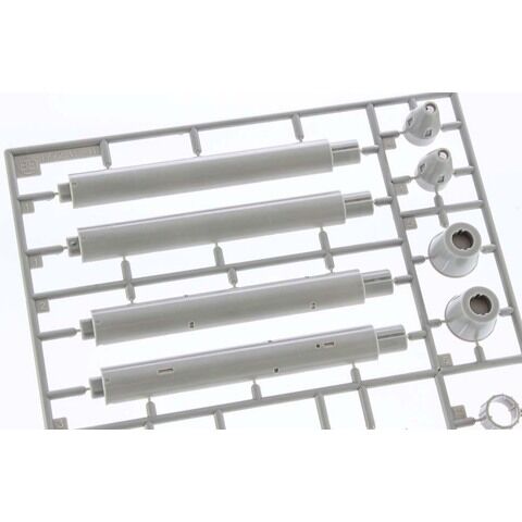 キットは新規プラ部品のロケットブースター、閉じた状態の脚カバー、展示スタンド用の支柱をセットします。