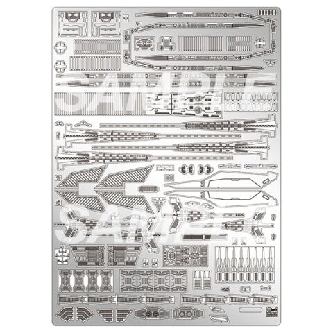 艦橋まわりのアンテナの様なプラ部品ではパーツ化不可能な繊細な表現や、船体のパネルディテール追加用パーツをセットしたディテールアップ用エッチングパーツです。