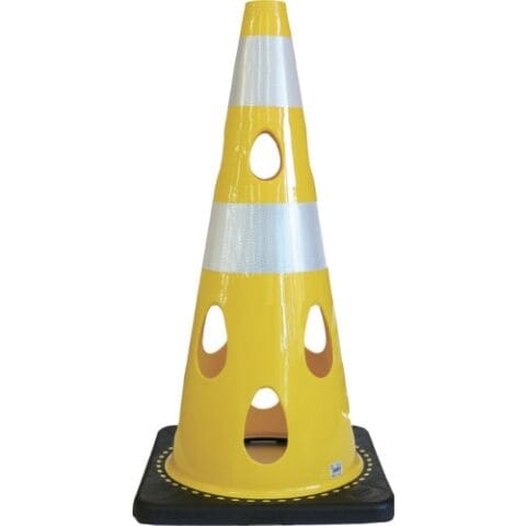 カーボーイ 点滅灯設置可能タイプ(上部切り欠き加工あり) 穴あきコーン 反射ホワイト/イエロー CHRK-700YE 【返品種別B】