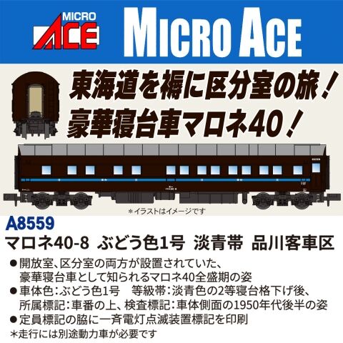 マイクロエース (N) A8559 マロネ40-8 ぶどう色1号 淡青帯 品川客車区 マイクロエ-ス A8559 マロネ40-8ブドウ1ゴウ タンセイオビ 【返品種別B】