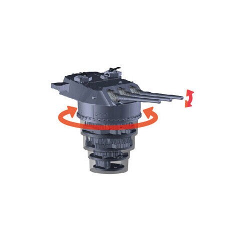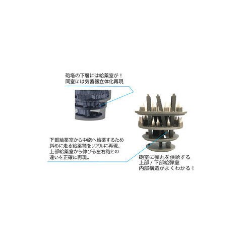 1/200というビックスケールで、砲塔および最上甲板下の上下給弾室など主砲支筒を含む主砲塔一式が再現できます。