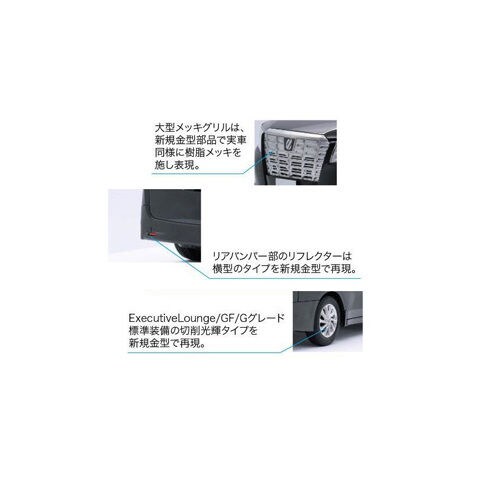 ExecutiveLounge/GF/Gグレード標準装備の切削光輝タイプを新規金型で再現しました。