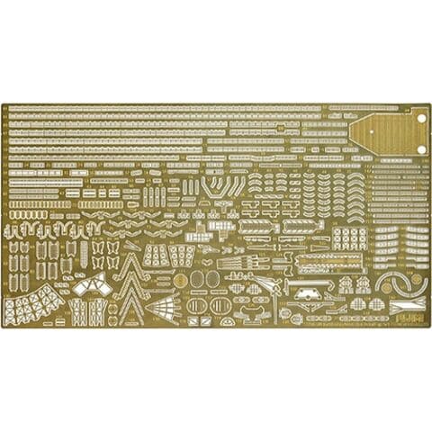 エッチングパーツには、手摺、ステップ、水密扉、ボートダビット、飛行甲板、カタパルト、クレーン、煙突周りの付加物、舷梯、トラス、ループアンテナなどを収録。