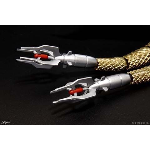 ・中央の頭部は、左右のシャープなアンテナ状造形や口腔内の牙など細やかな造形表現で設計。