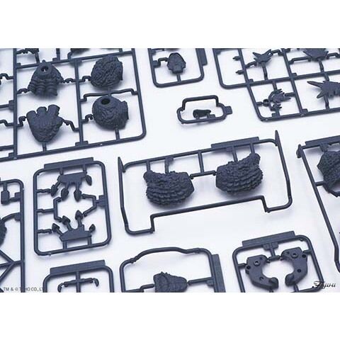 ■頭部のパーツ構成は左右分割タイプ。眼球はホワイト成形色で別パーツ化。口腔内は鋭く細かい牙が並ぶ姿を繊細な彫刻で再現。