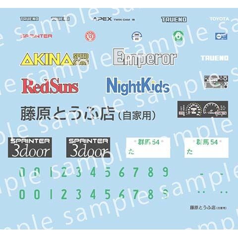 ヘッドライトは開閉式を選択可能。 スポーツマフラー再現用に金属パイプが付属。 デカールにはロゴマーク、ナンバープレートに加え、走り屋の間で人気を集めた多様なマークを収録。 キャラクターイラストを高精細に印刷したアクリルスタンドが付属。台座は嵌め込み式です。 アクリルスタンドサイズ:高さ70mm
