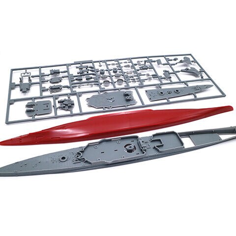 艦体は左右舷を一体で成形した1ピース構造で左右貼り合わせ式に比べ、安定した形状で組立てができます。