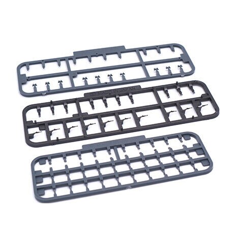 25ミリ機銃は2ピース構成で、砲身のガンメタルと基部の艦体色を塗り分け再現が容易にできるようにしています。