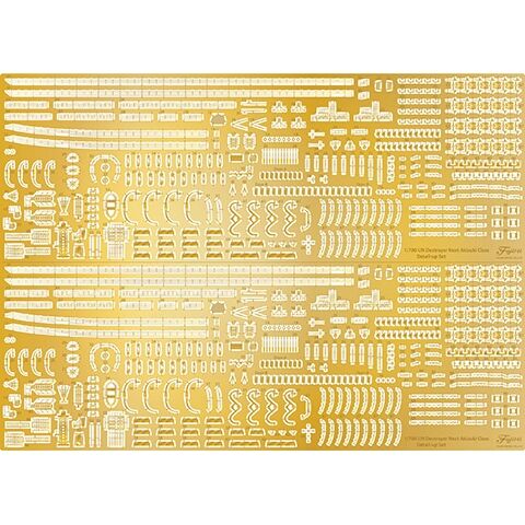 エッチングパーツには手摺、13号電探、21号電探、スキッドビーム、爆雷装填、舷梯、ダビット各種、ラッタル、旗竿、単装機銃、魚雷スクリュー、防盾、対空照準器、煙突周囲ディテールなどを収録。