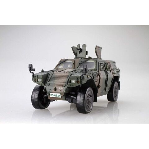 全てのパーツは完全リサーチのうえ新規金型によるもの。 中隊長車と機関銃搭載車を各1両製作できる2両セット。 製品は無線アンテナ台を増設、ラックを搭載した中隊長車仕様と5.56MINIMI銃を搭載した機関銃搭載仕様の2両セット。 各仕様1両ずつ、または機関銃搭載仕様2両が製作可能です。 1/72スケールながら車体底部の造形や、自重で変形しているタイヤの形状をリアルに再現しています。