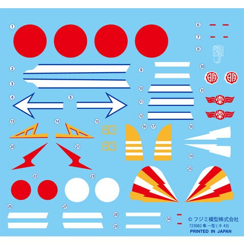 ■デカールには昭和17年春ビルマの64戦隊長 加藤少佐機、昭和17年10月ビルマの11戦隊長 杉浦少佐機を再現できる部隊マークと機体番号を収録。