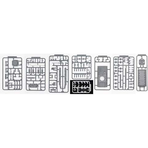 前面・左右側面・底面は、スライド金型で一体化したパーツで、箱組作業を低減した構造 上面は側面上方を一体化したパーツで、部品点数を抑えながら組立やすさ・造形を追求 表面は精密な溶接痕・パネルライン・滑り止めを細密彫刻で再現 省略されがちな底面部分は、溶接痕や立体形状をしっかり再現 給油口・点検用ステップ・ジャッキなど車体側面の艤装形状は車体と一体の表現 左右側後方に車載されたパイオニアツール・右側面の履帯分解工具は車体と一体の表現