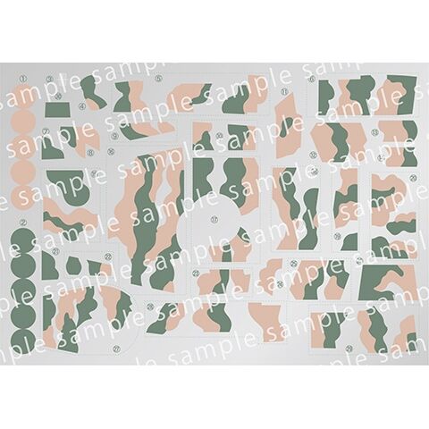 3色の迷彩はブラウンの成形色と表面追従性の高いリアルシールで再現する仕様です。