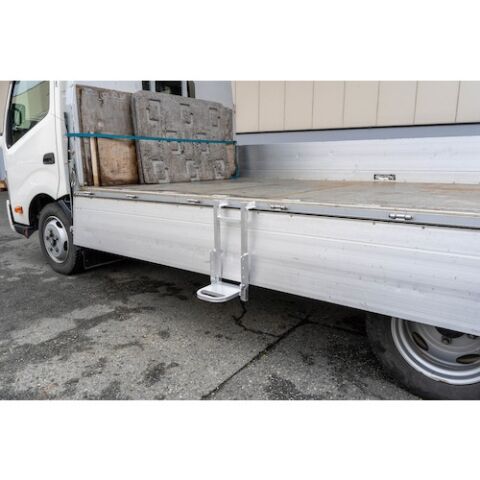 ◆トラックのアオリに掛けるだけで簡単にセットでき、荷台への昇降をスムーズにおこなえます。