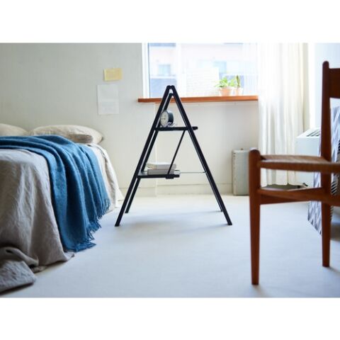 ◆スタイリッシュなデザインが魅力、イスにもなる幅広タイプの踏み台です。