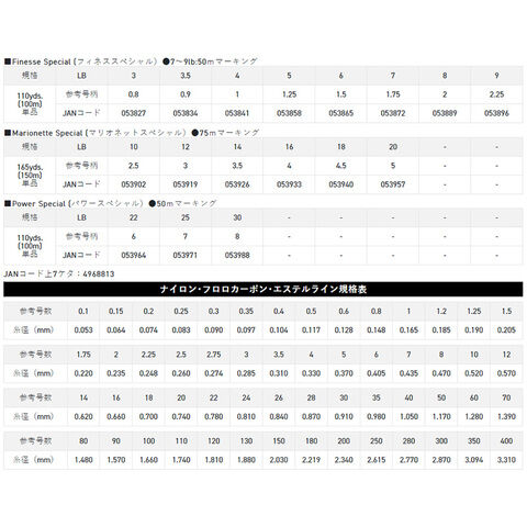 フィネススペシャル(3lb~9lb)・マリオネットスペシャル(10lb~20lb)・パワースペシャル(22lb~30lb)のタイプ別専用設計。