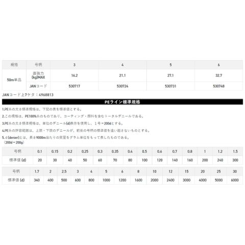 ◆高強力スーパーPE採用により、ワンランク細い号柄の使用が可能です。