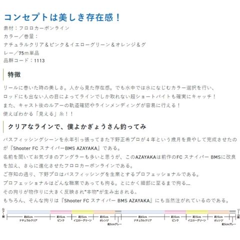 サンライン シューター・FCスナイパーBMS AZAYAKA 75m(2.25号相当/7lb) SUNLINE フロロカーボンライン シューター・FCスナイパーBMS AZAYAKA 75m(2.25ゴウ/7lb) 【返品種別A】