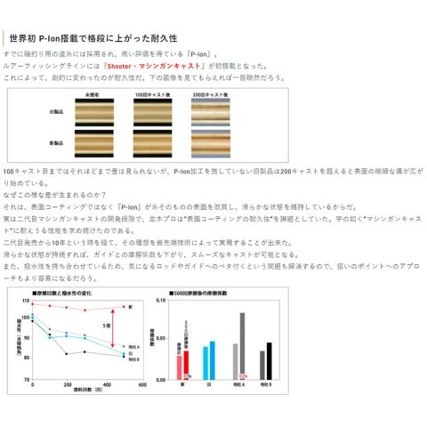 さらにガイドから出るラ インの放出感はまるで無抵抗に感じるほどアップ。スムーズに出て行くラインはわずかなブレも無くなりピンポイントに狙い撃つことができます。