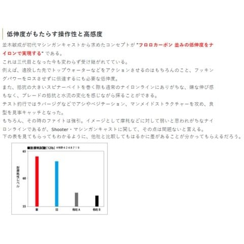 号柄別糸質専用設計により細号柄は低伸度を重視。太号柄になるにつれてリール馴みを優先し抜群の使用感を実現。