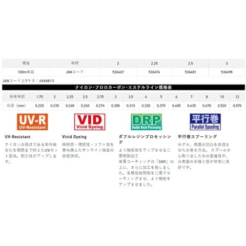 DRP加工によりスベリ性に優れ、結束がスムーズでラインの送り込みも楽に操作できます。撥水性も良く、水切れも抜群です。