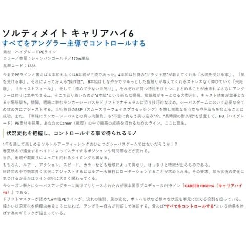 サンライン ソルティメイト キャリアハイ6 170m シャンパンゴールド(0.8号/12lb) SUNLINE PEライン ソルティメイト キャリアハイ6 170m シャンパンゴールド(0.8ゴウ/12lb) 【返品種別A】