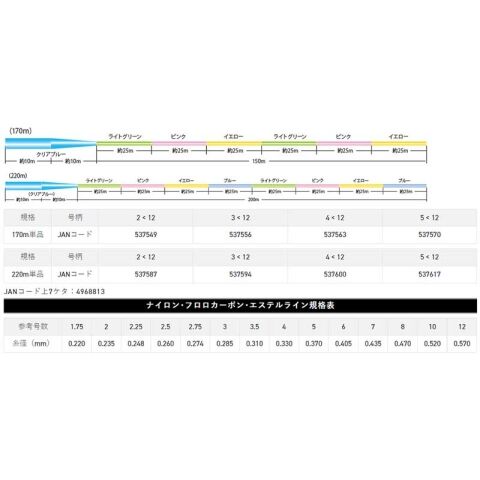 ◆色鮮やかな3色(170m製品)と4色(220m製品)カラーローテーション。
