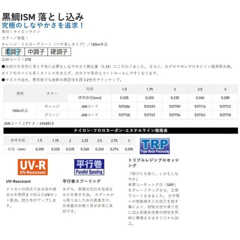 ◆仕掛けを自然に落とす為に必要なしなやかさと軽比重(1.12)にこだわりました。さらに、糸グセやヨレが付きにくい超柔軟糸質。