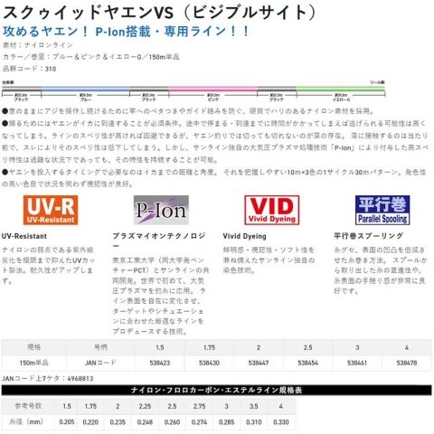 サンライン スクゥイッドヤエンVS(ビジブルサイト) 150m(1.5号) SUNLINE ナイロンライン 道糸 スクゥイッドヤエンVS(ビジブルサイト) 150m(1.5ゴウ) 【返品種別A】
