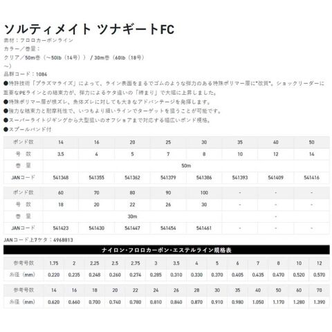 サンライン ソルティメイト ツナギートFC クリア 50m(14号/50lb) SUNLINE フロロカーボンリーダー ソルティメイト ツナギートFC クリア 50m(14ゴウ/50lb) 【返品種別A】