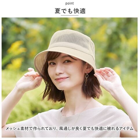 メッシュ素材で作られており、風通しが良く夏でも快適に被れるアイテム。