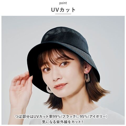 つば部分はUVカット率99%(ブラック)、95%(アイボリー) 気になる紫外線をカット!