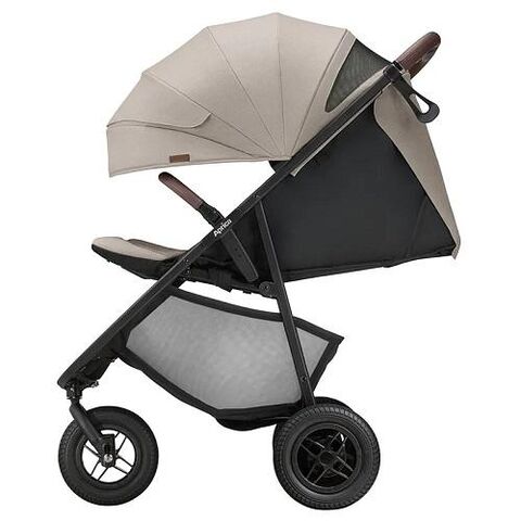 「スムーヴ プレシャス AB」は、3輪ベビーカー59cmハイシート。熱・排ガス・ホコリなどの刺激から赤ちゃんを遠ざけます。