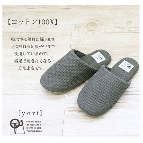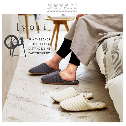 ◆素足で履きたくなる心地よさ! 綿花のみで撚ったコットンを使用した「yori ヨリソフトスリッパ」。