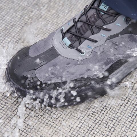 ◆グリップ力の高いオリジナル配合の材料を使い、接地面積を広くしたソールに太い排水ラインが入ったオリジナルパターンで、スムーズな排水が可能。