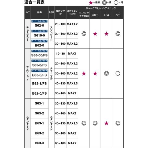 ジグやジャークの種類を選ばないスタンダードなモデル。