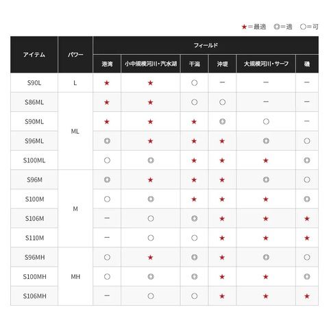 港湾、小中規模河川、ウェーディングゲームなどにマッチし、ストラクチャー際を狙うキャスト精度重視のシーンも得意。