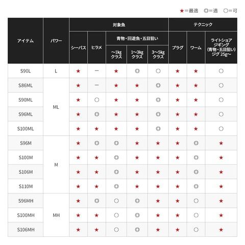 軽量プラグに適したLパワーから60g級メタルジグまで対応するMHパワーの全12アイテムに展開しました。