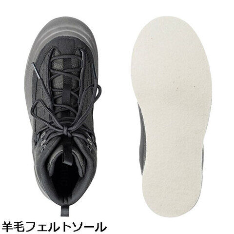 川で高いグリップ力を発揮する羊毛フェルトを採用したウェーディングシューズ。