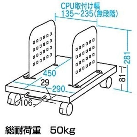 サンワサプライ パソコン本体設置用キャスター付CPUスタンド(1台設置用) CP-029 【返品種別A】