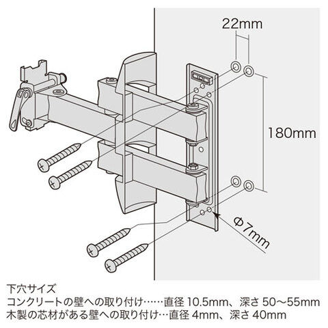 ・画面上下(チルト)/30° - 付属品:ディスプレイ取り付け用ネジ(M4×12、M6×12、M8×12・各4本ずつ)、アンカー×4