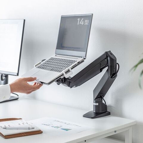 お手持ちのモニターアームに取り付けることで、ノートパソコンを上下左右使いやすい位置に調整できるトレーです。