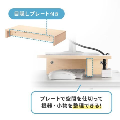 ディスプレイ下の空間を収納スペースとして有効活用できるモニター台です。