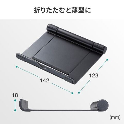 カバンのポケットなどにも入れやすいスリムなデザインのスタンドです。